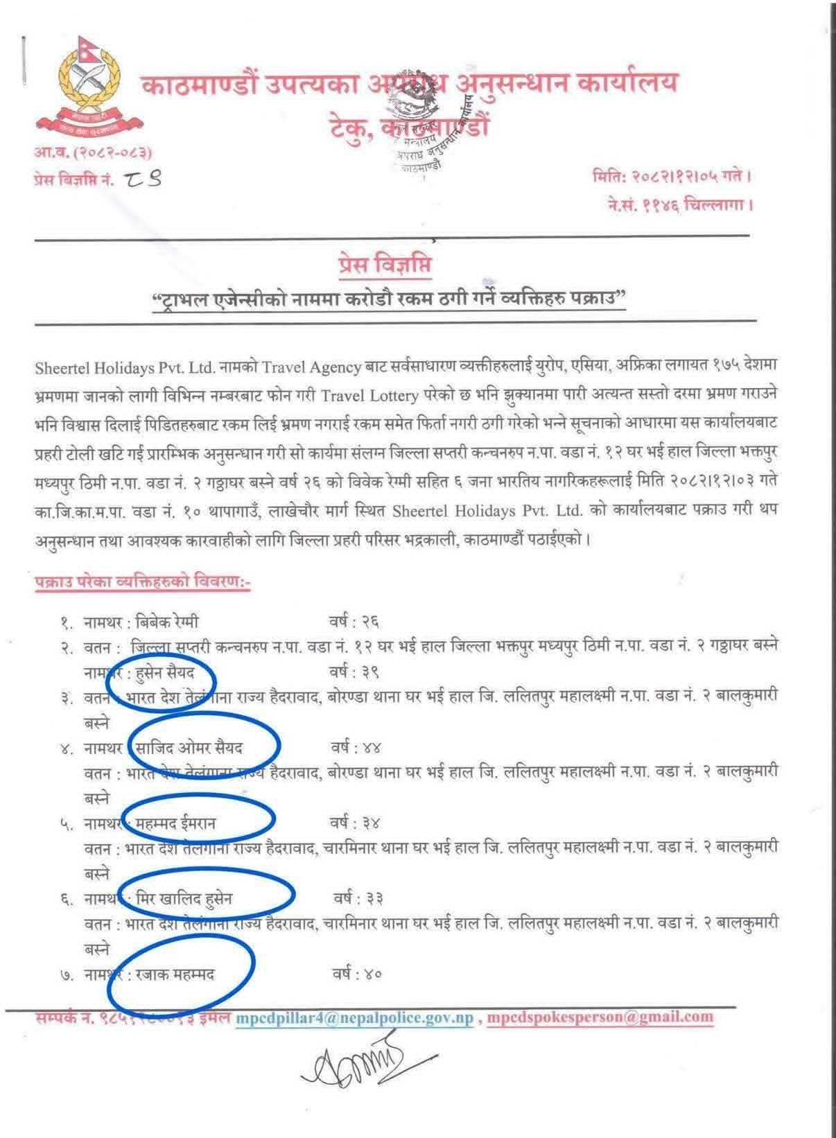 कार्यालयका अनुसार Sheetal Holidays Pvt. Ltd. नामक ट्राभल एजेन्सी प्रयोग गरी युरोप, एसिया तथा अफ्रिकाका विभिन्न देशमा रोजगारीका लागि पठाइदिने भन्दै सर्वसाधारणलाई भ्रममा पारेर रकम असुल्ने कार्य भइरहेको थियो।